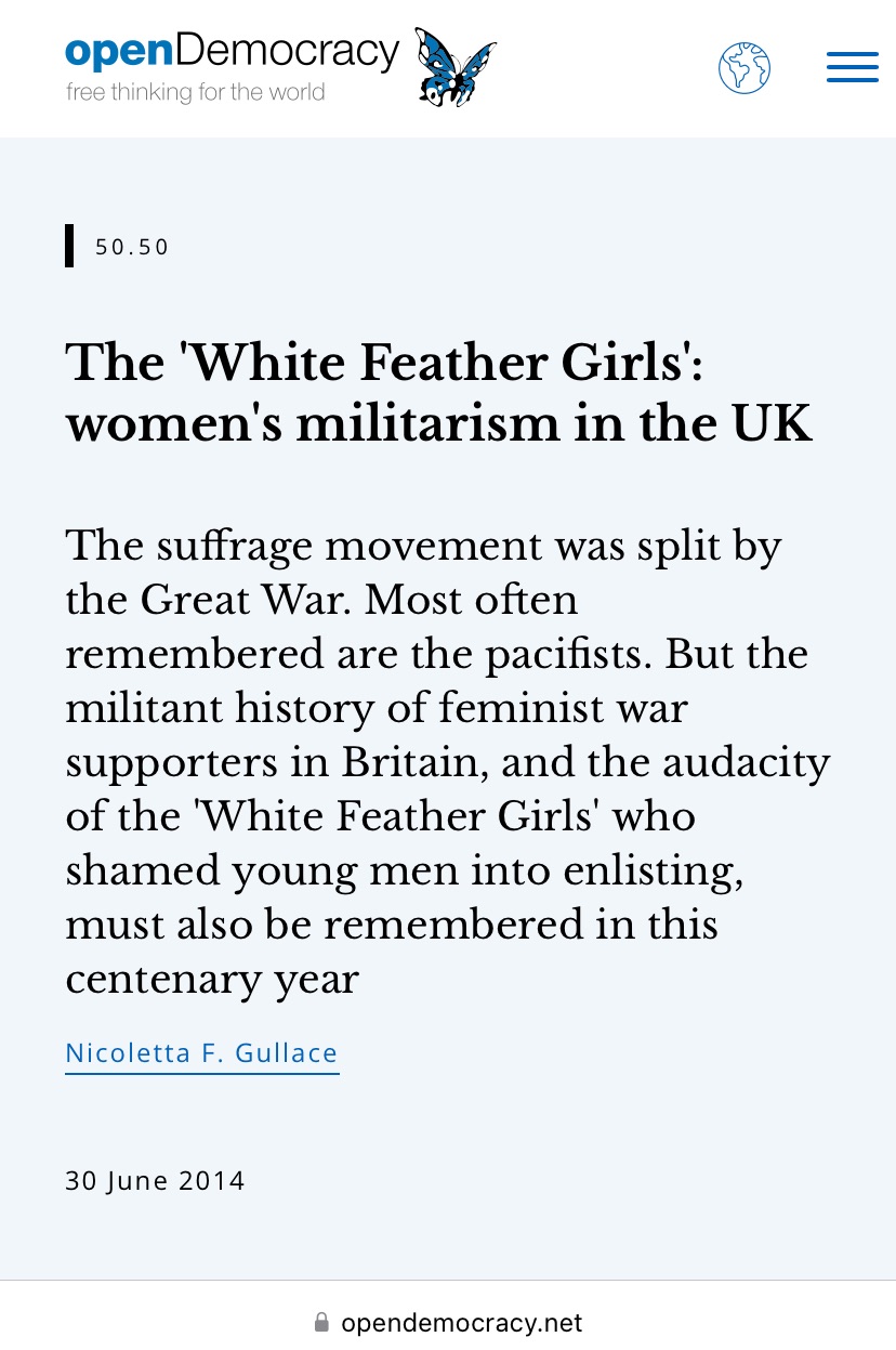 ‘The White Feather Girls: Women’s Militarism in the UK’ by Professor Nicoletta Gullace