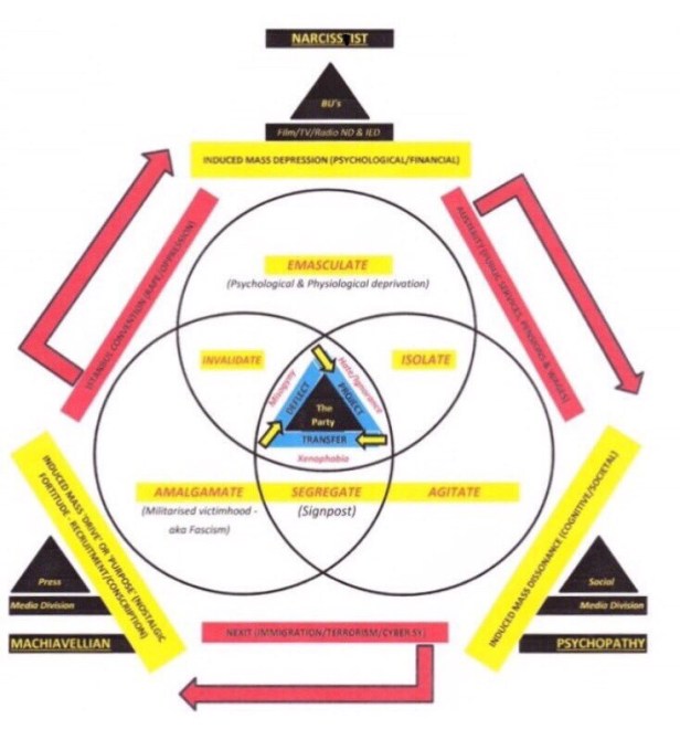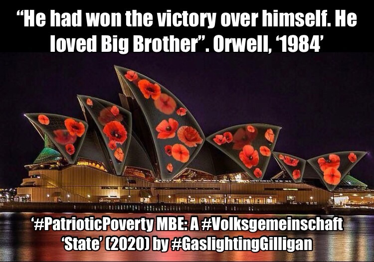 These profiteering British landmark building-sized ceremonies have emerged under the camouflage of WWI Remembrance but have in fact been manipulated to stage-play their very own walk on part in the next oil-war, as part of the wider Tragedy-Charity Gaslight Ceremony Cycle (#MaslowsMartyrs) to #DarkTriad – (my ‘Gaslighting Gilligan’ model for global-fascism)…