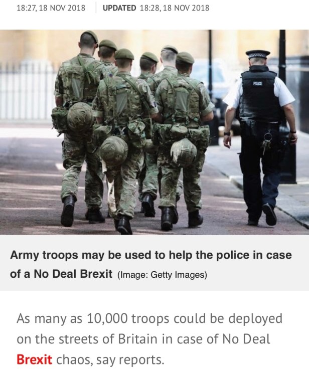 And fake ultimately, because both scenarios – and no Brexit at all – all lead to the military being deployed on the streets of Britain. So, no matter the pretext – all roads (aptly) lead to Rome; militarisation.