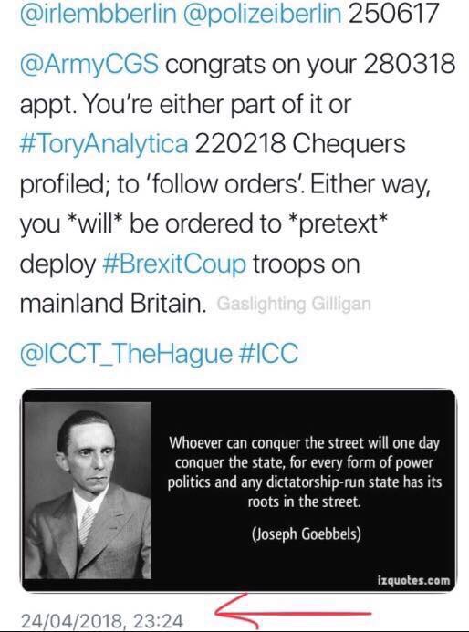 Well here’s another; #ToryAnalytica’s PlanA to militarise Brexit – via war – I called it ‘#OpFukuglaschu‘ – which was why I went to Berlin when I did, as subsequently detailed in this Open Letter to The Irish Government/Oireachtas.