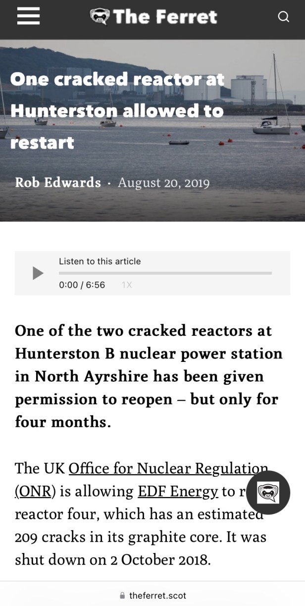 …Campaigners have previously argued that the reactors should remain closed to prevent the risk of a “catastrophic” nuclear accident spreading radioactivity over Glasgow and Edinburgh’. via ‘The Ferret’.