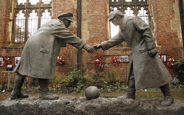 The football game that took place between British and German soldiers on no-mans-land in on Christmas Day 1914, is undoubtedly the most famous, even corporate romanticised incident whereby working class men on both sides chose to communicate and down their weapons in order to temporarily rediscover their humanity, taking brief respite from the daily battlefield bloodletting.