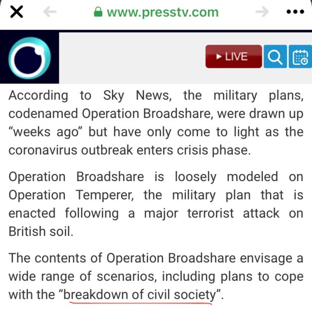 Following on from #ToryAnalytica’s paradoxic-plan to militarise ‘democracy‘ by deploying the military to ‘assist’ with Brexit called #OpYellowhammer, comes news of ‘Op Broadshare’ (above) to ‘cope with the breakdown of civil society’.