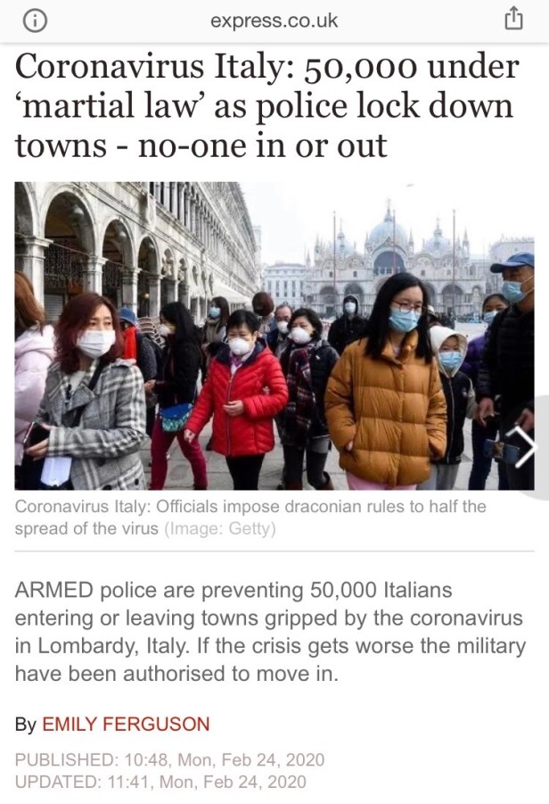 Now most people, would like to believe that the arrival of this reported ‘pandemic’ is just sheer coincidence and so probably haven’t given any further thought to the Italian Coronavirus connection.