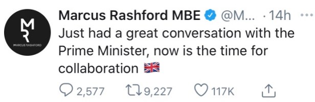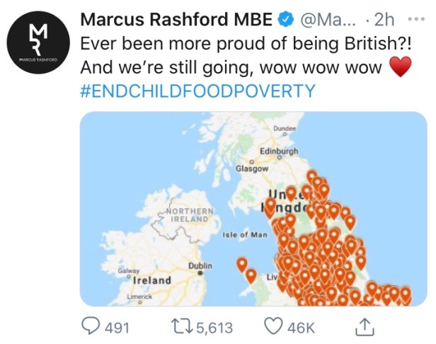 Yet it’s all Volksgemeinschaft-propaganda driven by the same UK Government that more than any other ‘British’ institution, typifies the ‘British’ condition – as does Marcus Rashford MBE himself – by equating as he infers in his tweets, that by fulfilling this most basic of humanitarian needs to be a uniquely ‘virtuous‘ and ‘characteristically British’ act of compassion…
