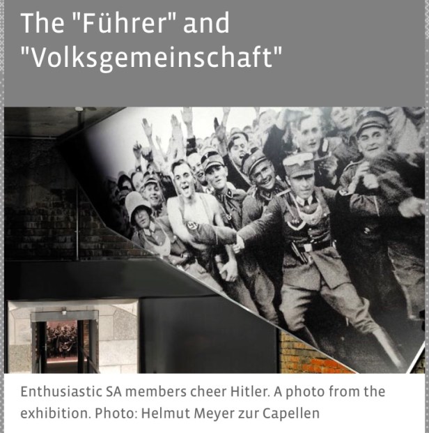 ‘These notions are at the root of the elimination of competing parties and the forcible cooptation of institutions that were supposed to represent the diversity of interests in a democratic order. These are to be replaced by a “Volksgemeinschaft” founded, most of all, on emotions. Of course, anyone who declines to join this “community,” or who does not meet its racial, political and moral standards or its demands for performance, will be excluded, isolated, or even physically annihilated’. via Nuremberg Museum
