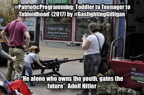 It would be an absolute emotional blackmail guarantee to compel those of us capable of critical thinking to shut the fuck up and probably be shouted down by the ‘moralistic’ majority who would confuse their sense of decency and indoctrinated ignorance housed in ‘Patriotic Programming: from Toddler to Teenager to Tabloidhood’ (2017)…