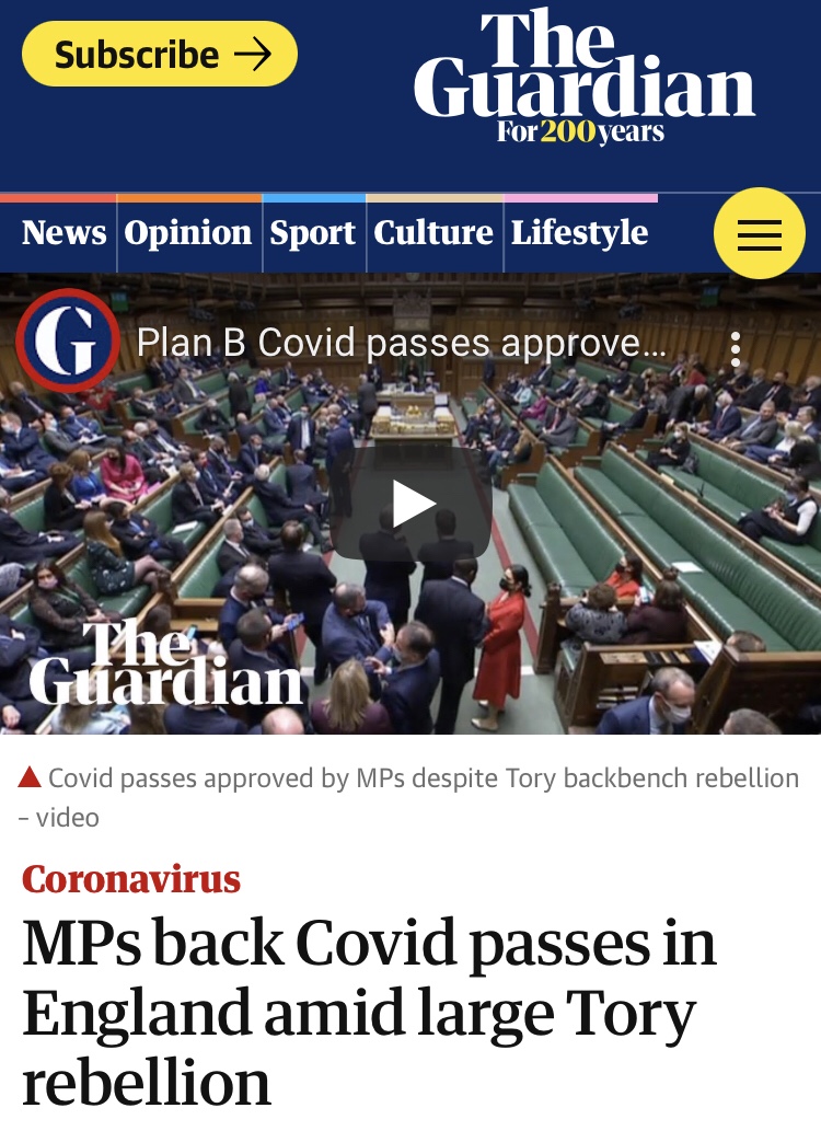 Again, I’ve not been ‘vaccinated’ nor will I be. (And certainly not after suffering debilitating migraines which started after being injected with all manner of vaccines including Anthrax prior to the 1990/91 Gulf War and again in 2003). As such the COVID ‘passports’ are undoubtedly a fear-driven Tory fascist construct aided by Orwellian ‘Party’ plants and ‘patsy’s’ on the ‘left’.