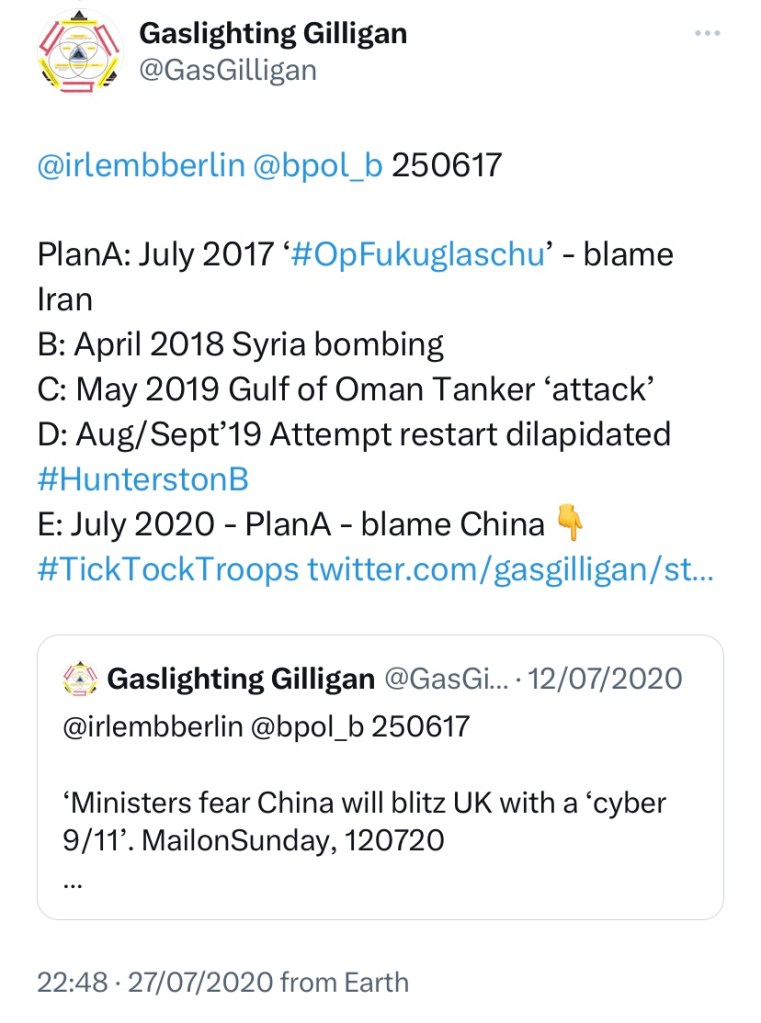 However getting this message over has been made all the more difficult by so-called US liberal and UK centrist ‘journalists’ and ‘politicians’ – many of whom are household names who played key roles in ousting Jeremy Corbyn – and whose role as part of their Orwellian plant duties since my 2017 warnings, have been to ‘mirror’ my ‘Gaslighting Gilligan’ writings but doing so in such a way as to water-down my interpretations.
