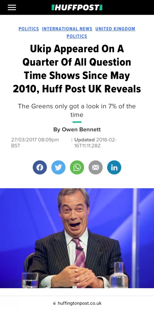…and of course their former Coutts banking ‘leader’ Nigel Farage, UKIP & co; who feigning ‘anti-Establishment’ credentials and rhetoric was also cyclically – and cynically – platformed by BBC Question Time since 2000 to clear a path for the BBC to platform his UKIP cohorts on behalf of the Tories and the wider Orwellian ‘Party’.
