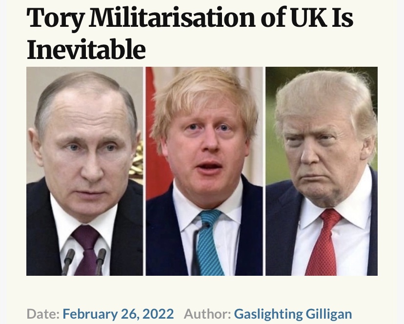 ‘When the Tories told us in 2018 they had a self-serving plan called ‘Operation Yellowhammer’ to militarise their own Putin dark-money bankrolled Brexit – we really should’ve had a big long chat about what that actually meant for ‘democracy’. And just as importantly – why the UK mainstream media and online ‘alternate’ media didn’t. We’re being subjected to an emotionalising and fear-laden re-run of the ‘Iraq WMD’ propaganda playbook which is “manufacturing consent” (Chomsky) to support sending US/UK and NATO troops to ‘aid’ their own CIA puppet Zelensky and widen the Ukraine war into the Western European theatre. This is to enable the UK Conservative Government to pretext declare the UK National Emergency they desperately need to ‘request’ President Biden for US military support. ‘Tory Militarisation of UK Is Inevitable’ (2022) https://wp.me/p94Aj4-33w