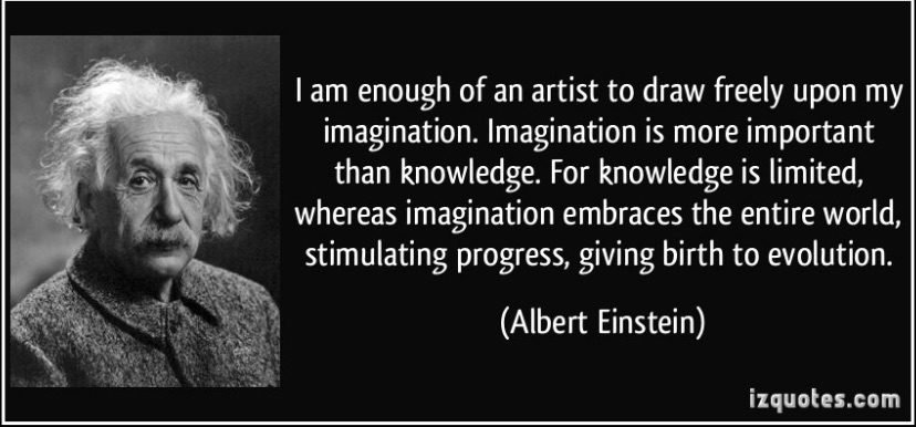 “Intuition and imagination are more important than knowledge. Imagination embraces the entire world giving birth to evolution. It is, strictly speaking, a real factor in scientific research”. Einstein
