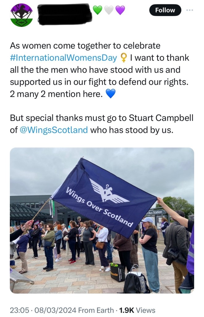 The most prominent and successful of these ‘activists’ as alluded to earlier in the piece, is the ‘Reverend’ Stu Campbell of ‘Wings Over Scotland’ who as the most influential online agitator is subversively working with the SNP LGBT proponents who too divided the movement, to ensure his followers remain suspicious and mistrustful of each other…