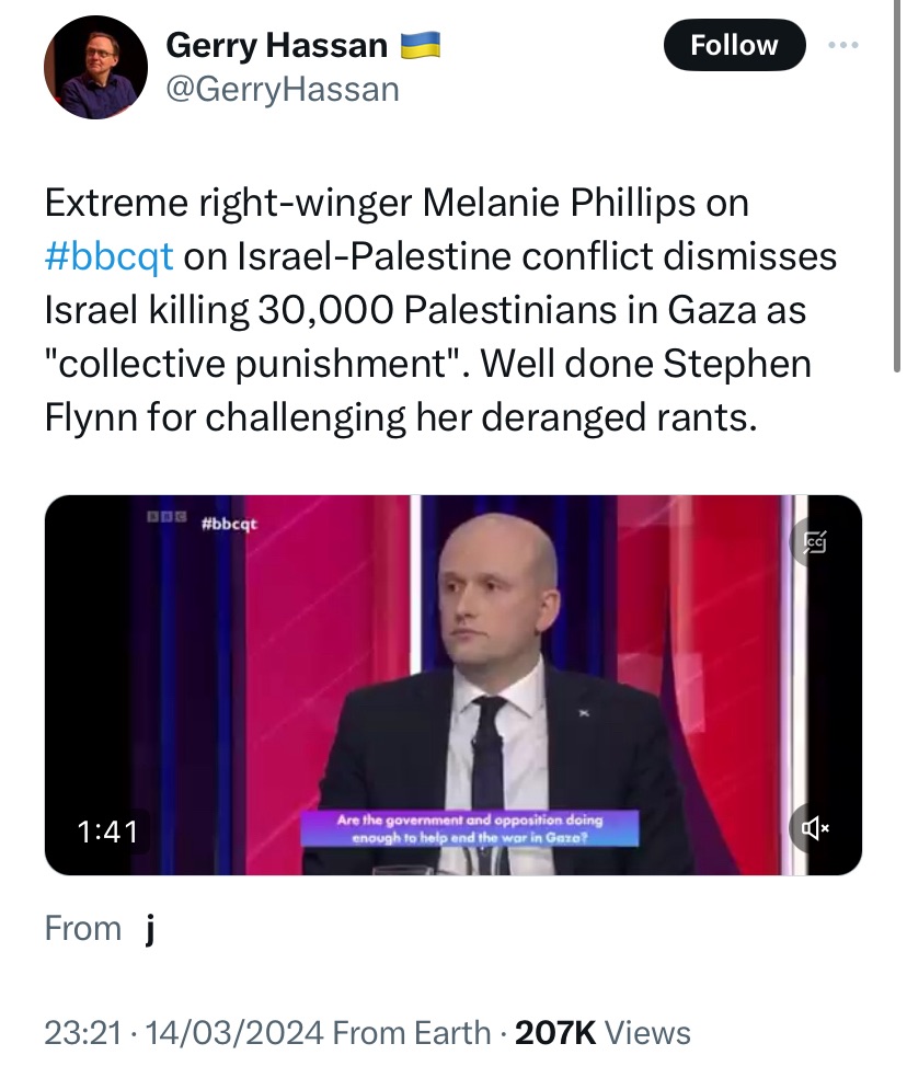 Whether unwittingly or by gatekeeper design, ‘leading’ Scots independence commentator Gerry Hassan (note too the Ukraine flag) feeds into and sustains the Machiavellian, emotionalised ‘reality’ housed in staged media-political theatrics, on the same show that repeatedly platformed the once unknown Nigel Farage – to fool the viewing public into ‘voting for’ Brexit.