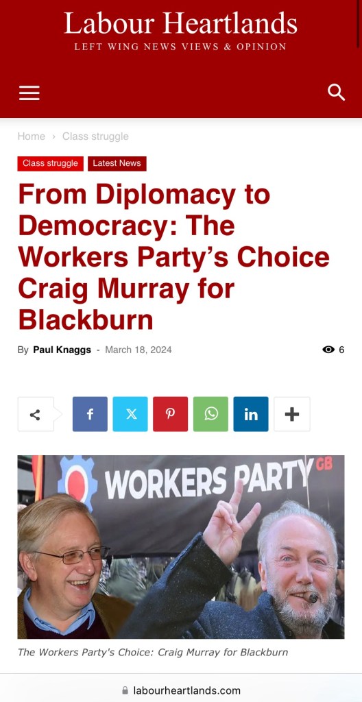 Edit-insert: forever steeping himself in victimhood theatrics he orchestrates himself with British State collusion in order to shore-up his anti-establishment ‘credentials’, Murray has now openly joined and plans to run in Blackburn for Brexiteer George Galloway’s ‘Workers Party of Great Britain’.