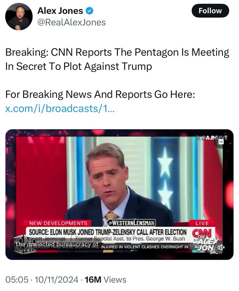 (3-5 minutes) Working with the Orwellian mainstream media, the self-proclaimed ‘anti-establishment’ champion – professional grifter Alex Jones who’s actually one of a multitude of fascist ‘Pied Piper’ agitators – is planting the psychological seeds of a ‘coup’ against Trump.