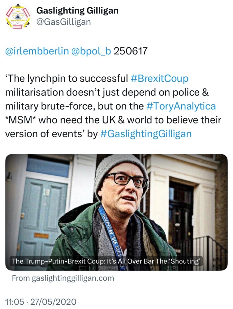 He’s not wrong. But having reminded him that I’d sent him the pieces previously – he ignored me. It could be he has an inflated ego or – and this is the motive in most cases with high-follower accounts – the account itself could be a long-standing agitprop page now attempting to draw traffic away from my blog in order to prevent a wider understanding of what’s actually taking place…