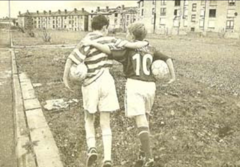 I don’t anticipate the heavily indoctrinated young men on either ‘side’ to pay any heed to what it is I’m trying to alert them to here, so this is aimed at the more level-headed supporters and to those families and friends who have loved ones and pals on the ‘other side’ of the Old Firm so we can get back to something like this.