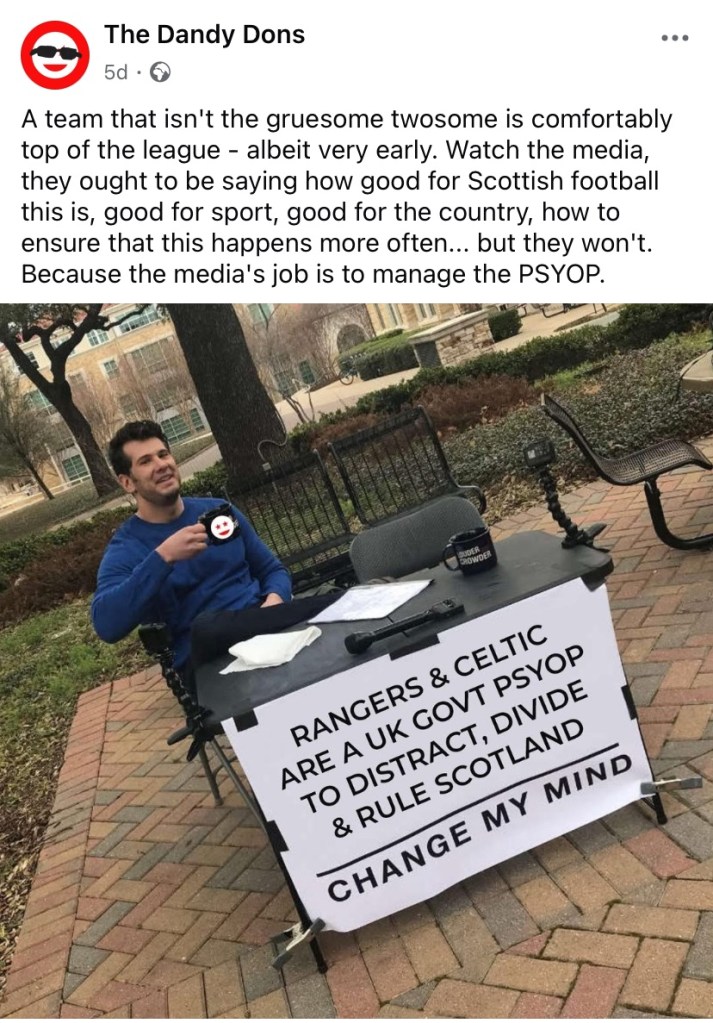 NB – I’ve no idea who’s behind ‘The Dandy Dons’ page (see screenshot below) but after having linked my interviews above to his/her Facebook page last year and again earlier this year, he recently posted this meme;