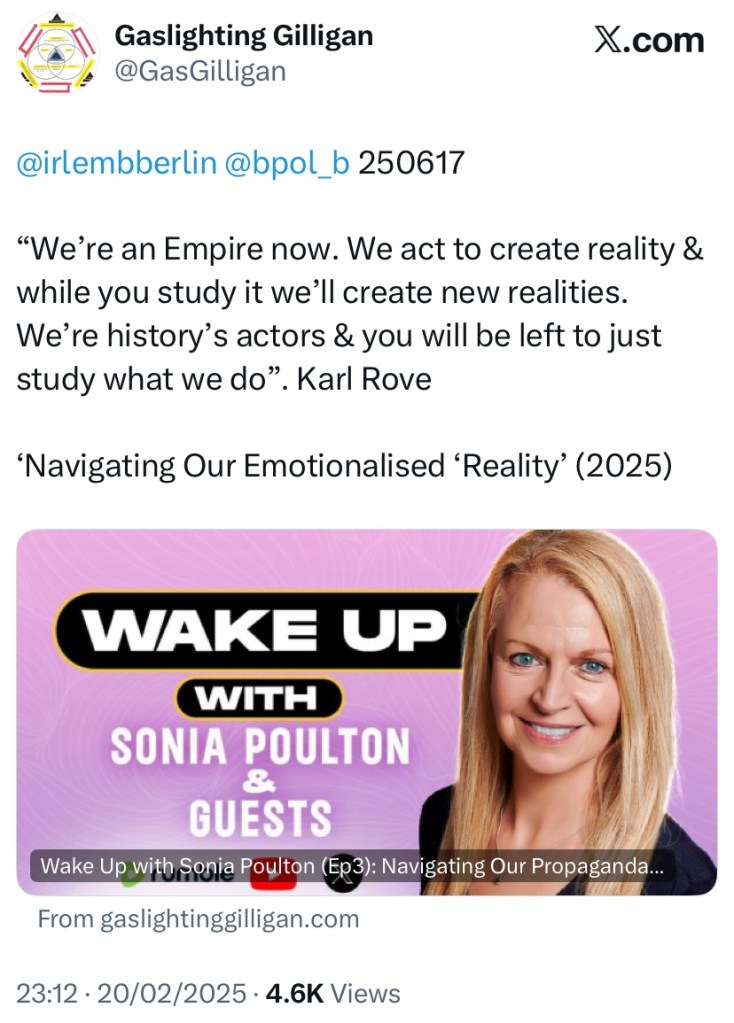 ‘Wake Up with Sonia Poulton (Ep3): Navigating Our Propaganda Emotionalised ‘Reality’ (2025) https://wp.me/p94Aj4-52B