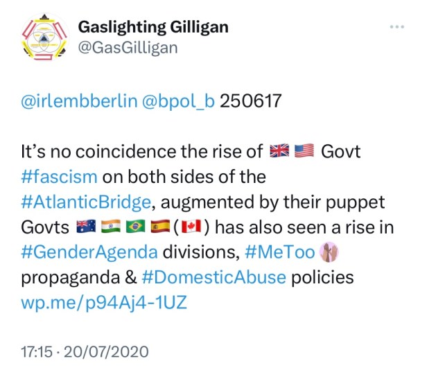 For further ‘Gaslighting Gilligan‘ (© 2017) pieces and to (free) download the book itself, please visit the archives. Copy, paste and share. Twitter: @GasGilligan
